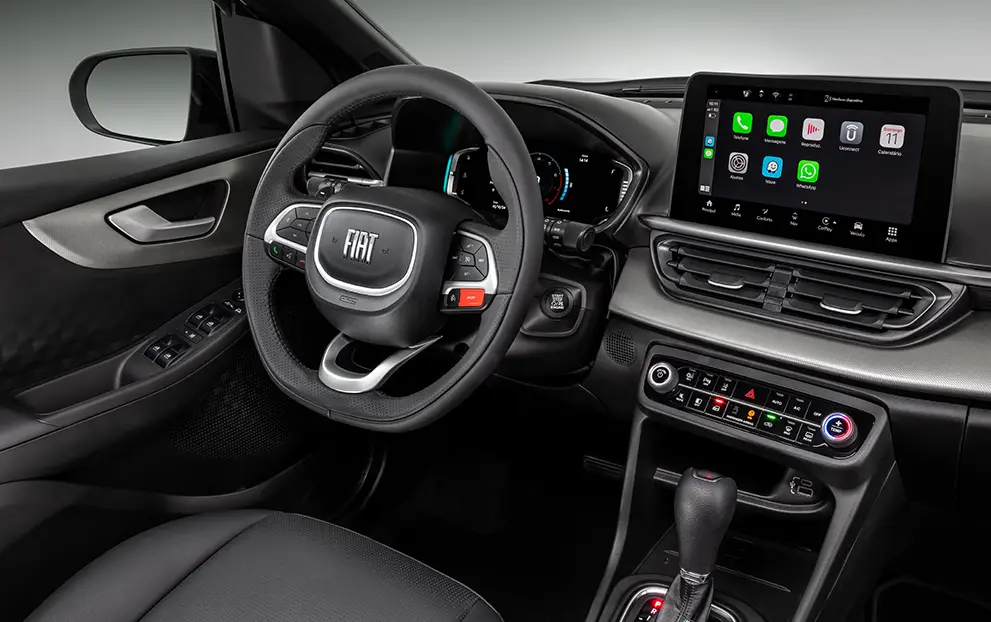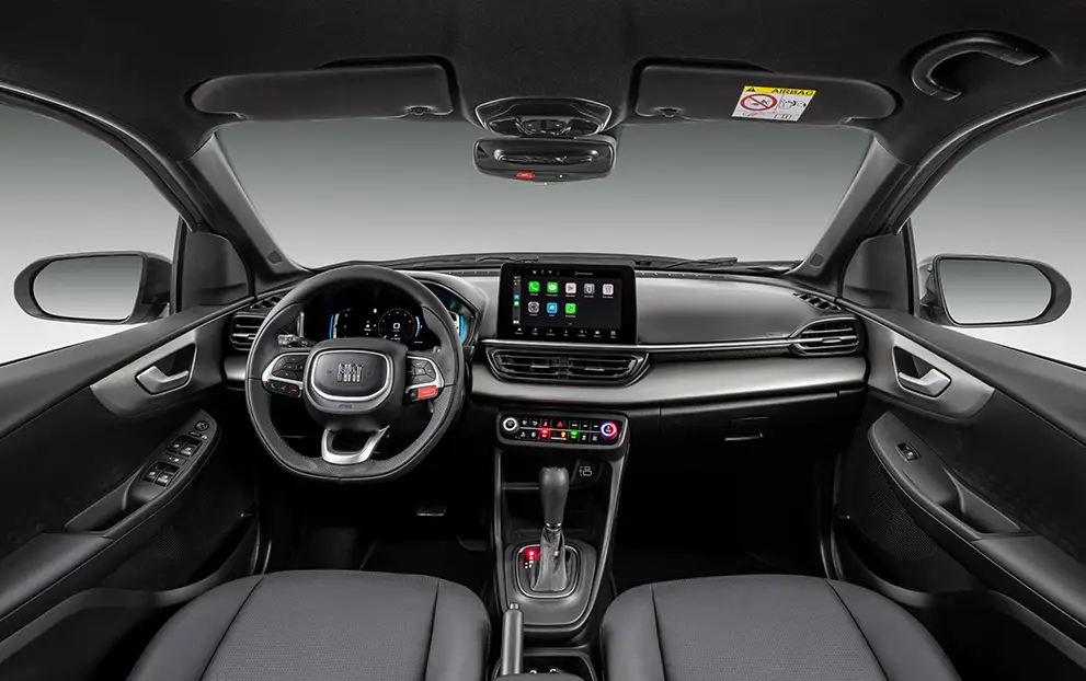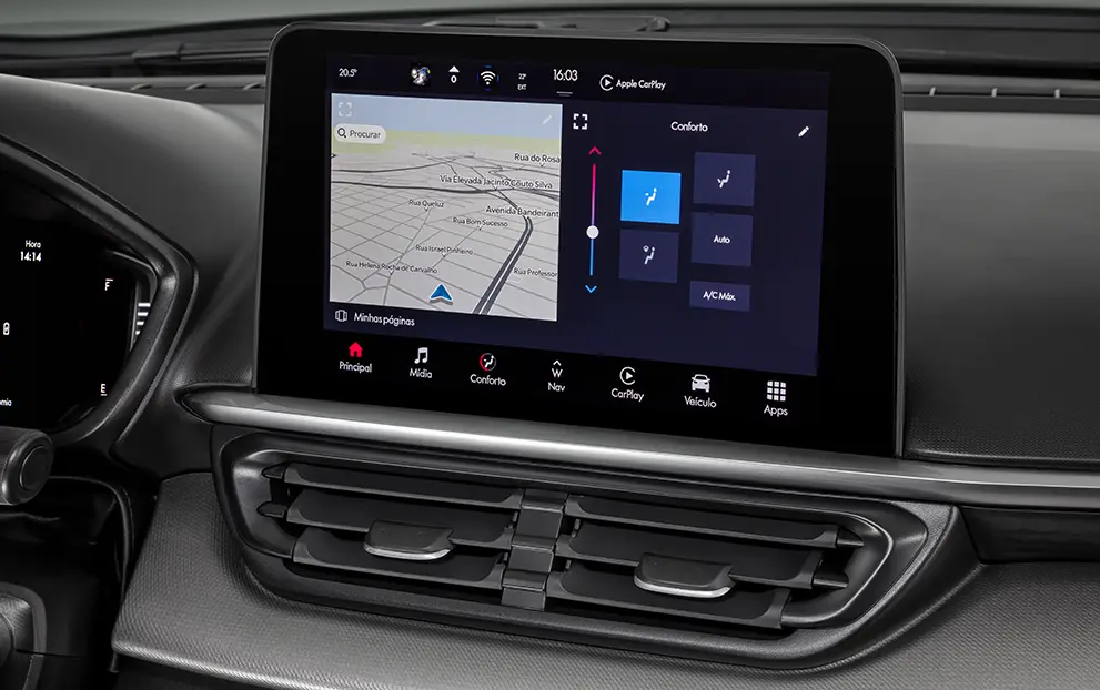 Central multimídia com tela de 10,1" touchscreen, Apple Car Play e Android Auto wireless, Comandos de Voz, Bluetooth, MP3, Rádio AM/FM, Porta USB (2): USB Tipo A e Tipo C